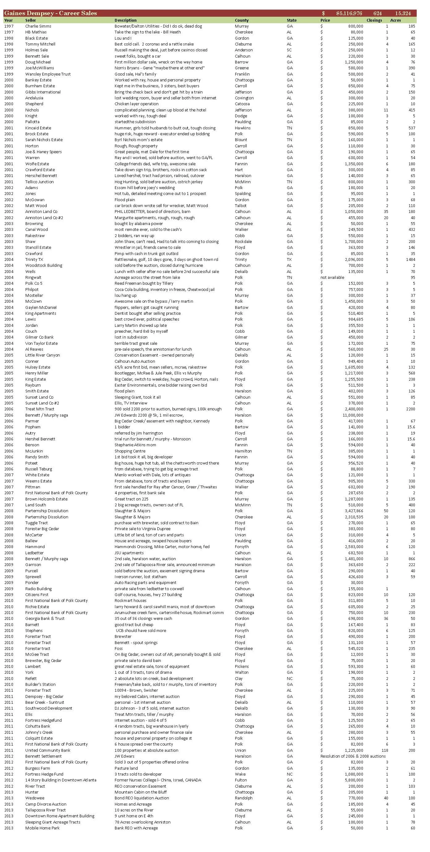 Over my 20 year real estate career I have brokered over 85 million dollars of real estate sales including over 600 closings and 15,000 acres.